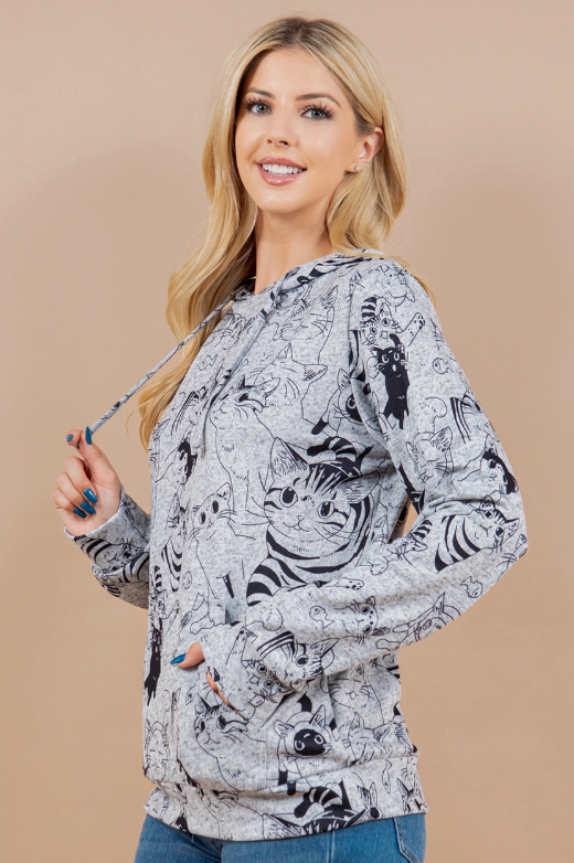 Variety Cat Print Soft Sweater Knit Pullover Hoodie